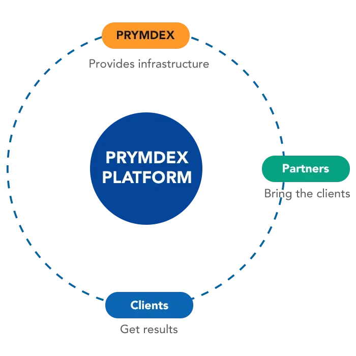 PRYMDEX operates as a technology-first platform. Once a client is onboard through your partner access, the underlying systems and service infrastructure are managed within the ecosystem.